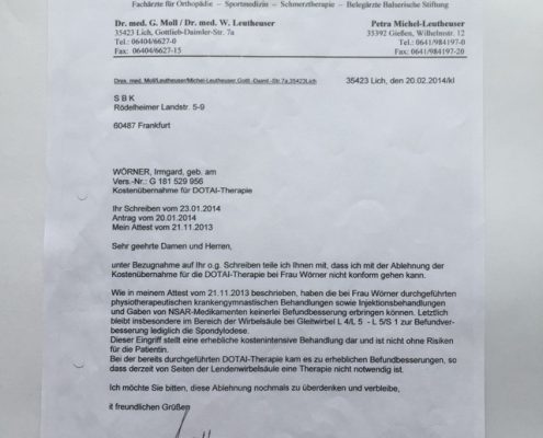 Auf diesem Video ist eine meiner Patientinen zu sehen die vor der ersten Dotai-Therapie nur mit fremder Hilfe und am Treppengeländer hochziehend die Treppe in meine Praxis hinauf kam. Doch schon nach der ersten Behandlung konnte sie wieder eigenständig, ohne jede Hilfe und freihändig die Treppe rauf- und runterlaufen!